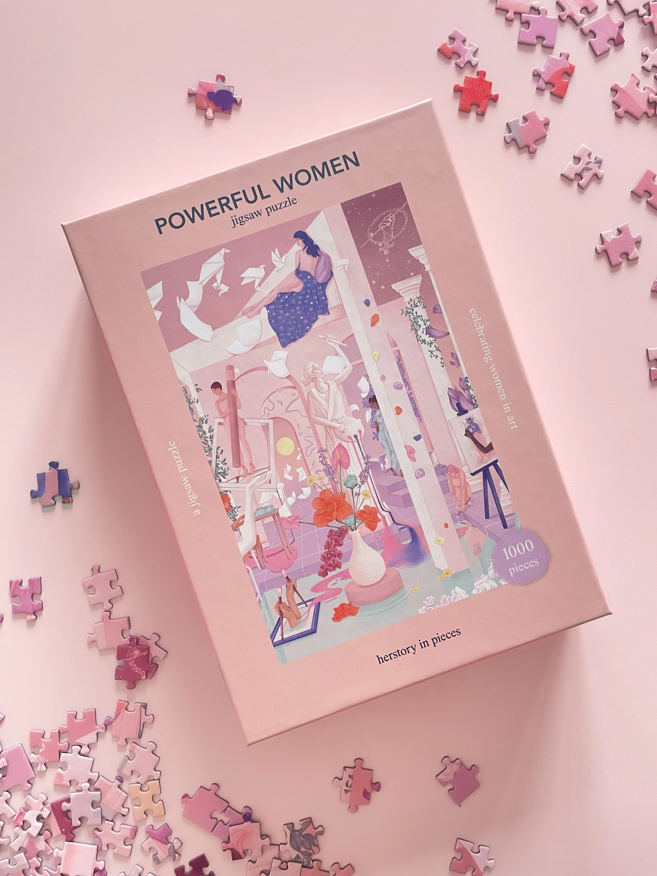 Explore the amazing world of art with the 1000-piece Powerful Women Puzzle! It showcases women bringing their stories to life. This puzzle isn't just about putting the pieces together; it's a joyful celebration of women's significant contributions to art history. Inside the package, you'll find a leaflet with fascinating insights into women's remarkable role in shaping the art world.
